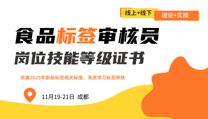 【11月19-21日 成都】 第39期-食品标签审核员岗位技能等级证书 培训及考核安排